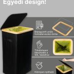 A fedél megakadályozza a kellemetlen szagok terjedését és a rovarok behatolását, miközben a helyiséget frissen és tisztán tartja. A bambuszgyűrű a vasgyűrűvel együtt megkönnyíti a szemeteszsákok rögzítését.
