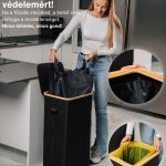 Ez a modell megerősített varrásokkal, tartós anyagokkal és esztétikusan kifinomult fekete színnel büszkélkedhet, amely zökkenőmentesen illeszkedik bármilyen térbe – legyen az egy modern iroda vagy egy minimalista konyha. Kompakt, mégis tágas kialakítása lehetővé teszi a hatékony újrahasznosítást anélkül, hogy túl sok helyet foglalna. Emellett a szemeteskosár bambuszkerettel rendelkezik, amelyen egy vasgyűrű található, amelyhez a szemeteszsákot rögzítik, így könnyen cserélhető és használható. A kukát 90 literes szemeteszsákokhoz tervezték, de könnyedén használhat nagyobbakat is.