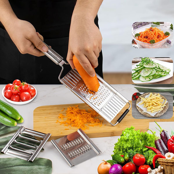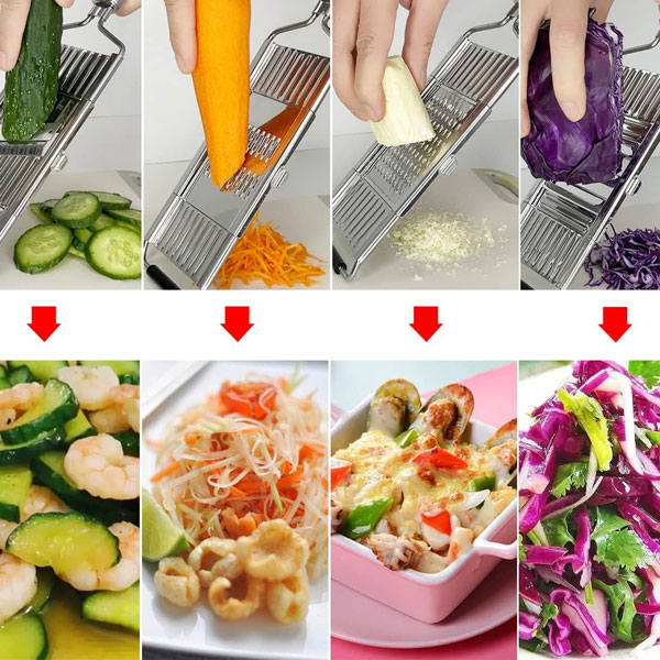 🧑‍🍳 Multifunkcionális kialakítás: Szeletelés, reszelés és aprítás egy eszközzel—tökéletes salátákhoz, sült krumplihoz és gyors ételekhez.